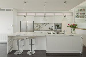 White on white isn’t everyones cup of tea but it’s certainly timeless. It’s an easy colour to match other kitchen accessories and appliances with and creates a high end finished look.